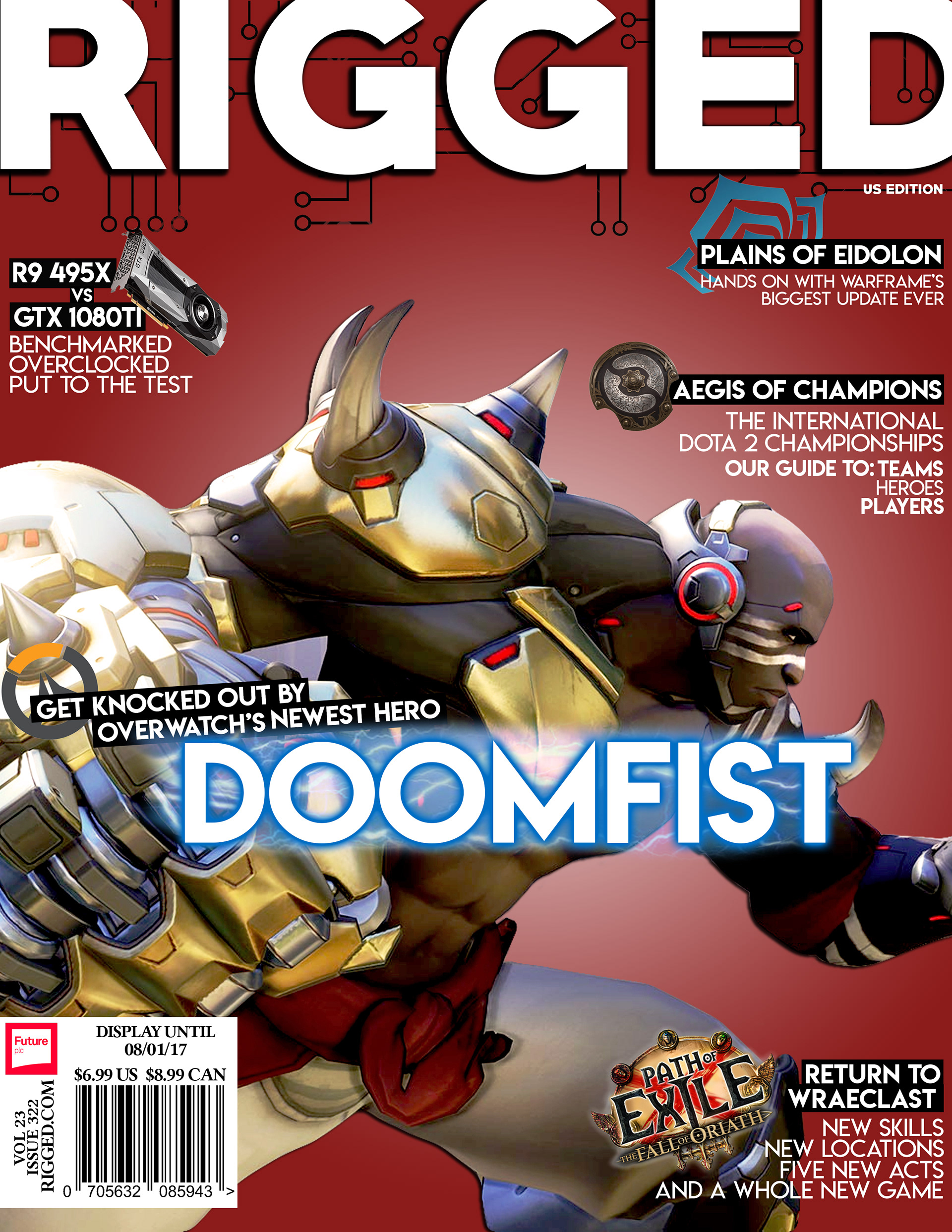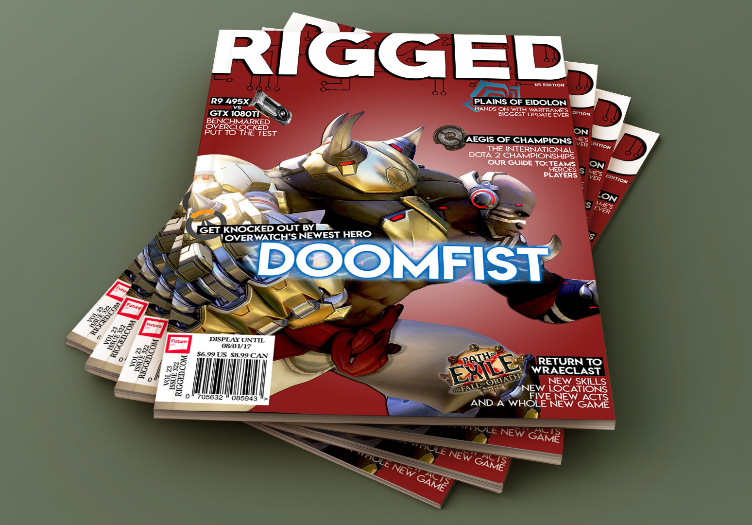 Cover page for the fictional computer gaming magazine RIGGED. Inspired by Wired and PC Gamer magazines, this was an attempt to create a clean, professional layout that would look at home on a magazine stand.